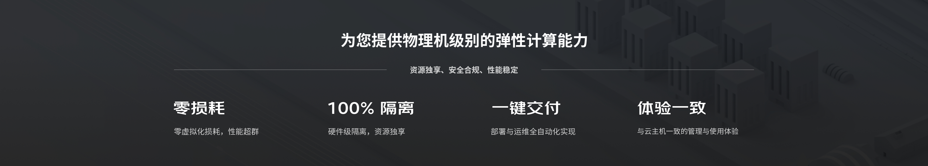 零虚拟化开销,无资源争抢,具备与物理机无差别的极致性能。基于最新“京刚”架构,硬件加速网络和存储,支持嵌套虚拟化。